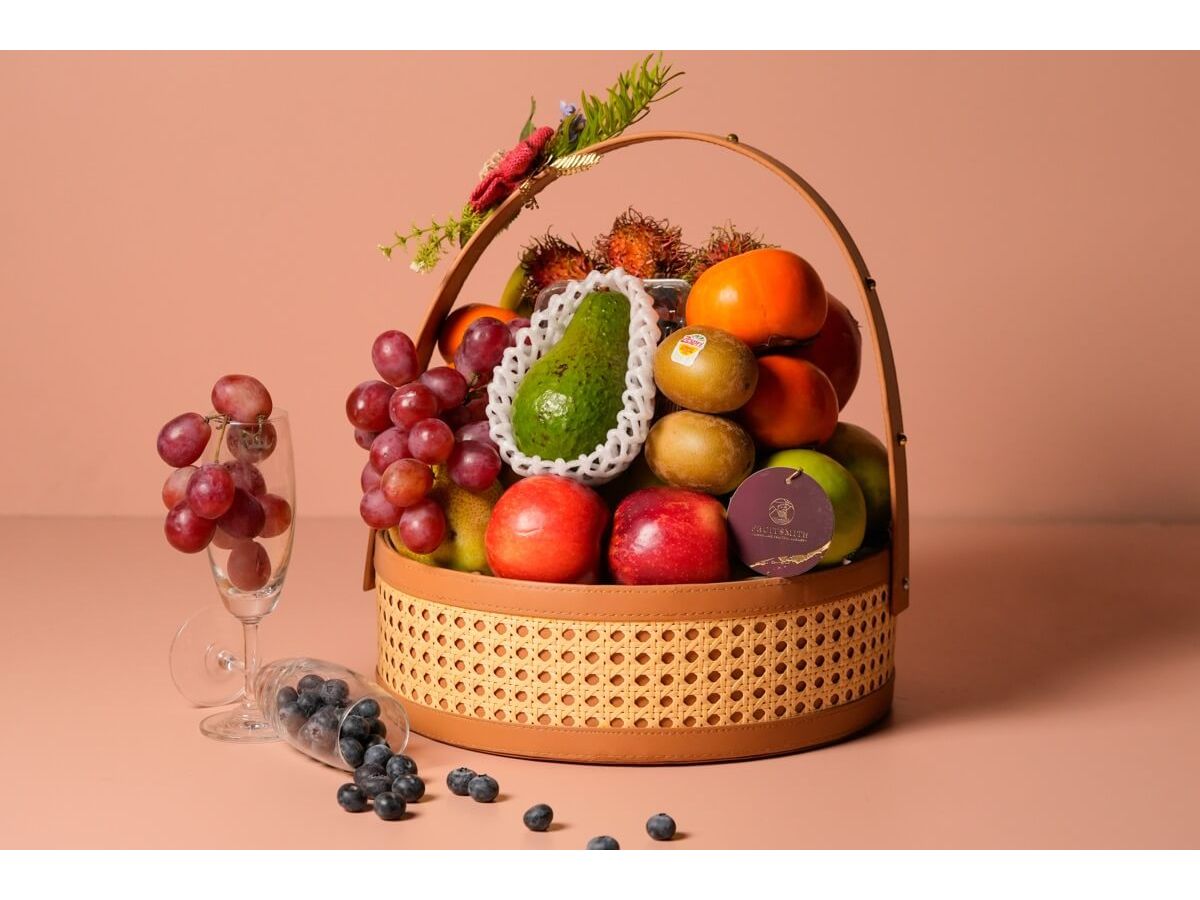 Red apple, Grannysmith apple, Imported pear, Navel orange, Thai dragon, Pomegranate, Persimmon, Thai mandarin, Rambutan, Blueberry, Red globe grapes, Avocado & Gold kiwi.