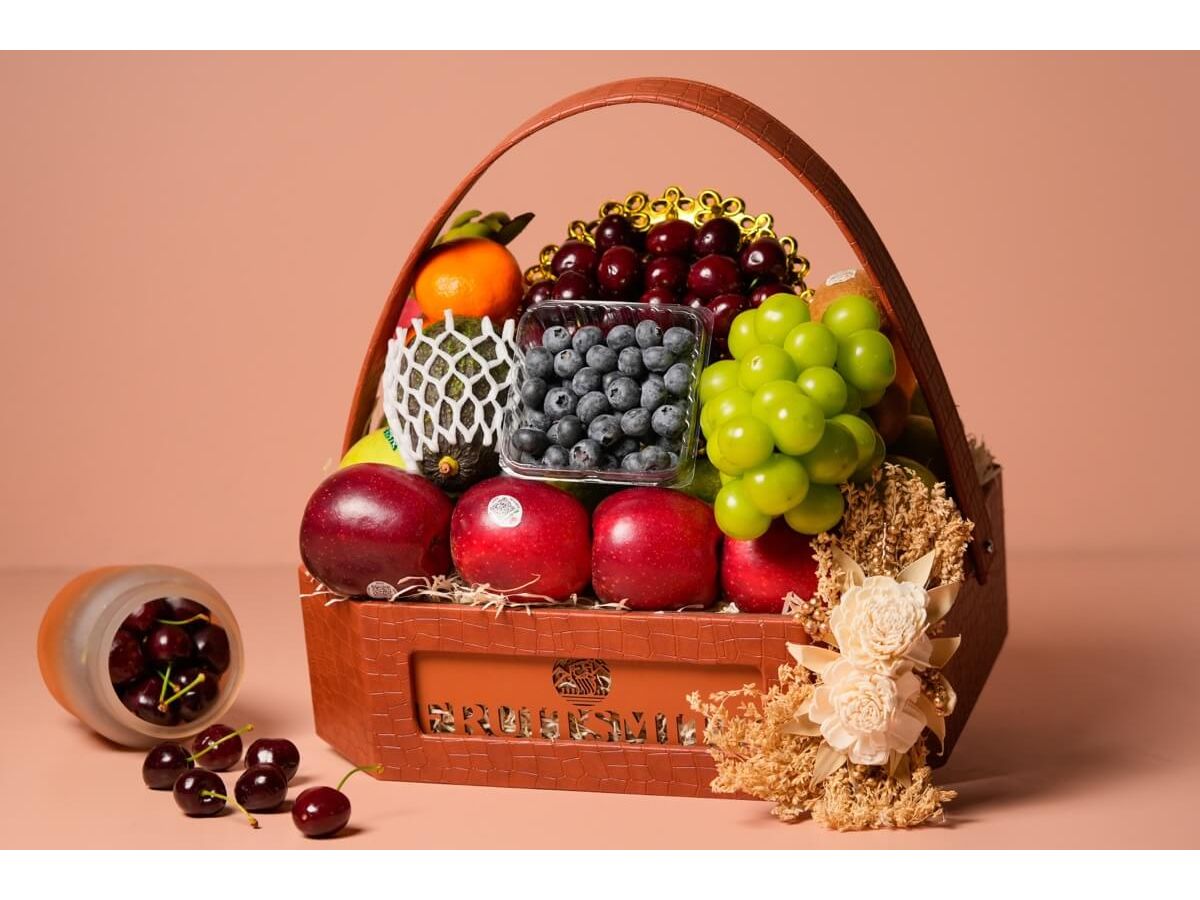 Imported pear, Navel orange, Thai dragon, Green kiwi, Imported cherry, Blueberry, Imported green grapes, Thai mandarin, Avocado, Granny smith apple, Red apple & Indian orange.