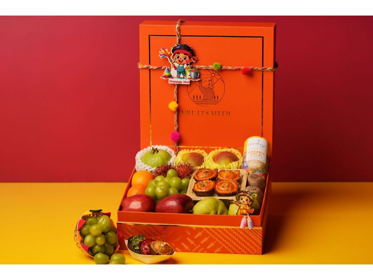Thai guava, Seasonal mango, Thai mandarin, Red apple, Imported pear, Green kiwi, Rambutan, Green grapes muscat, Organic gulal & Gujiya 4 pcs.